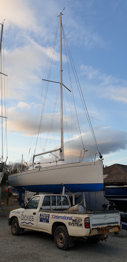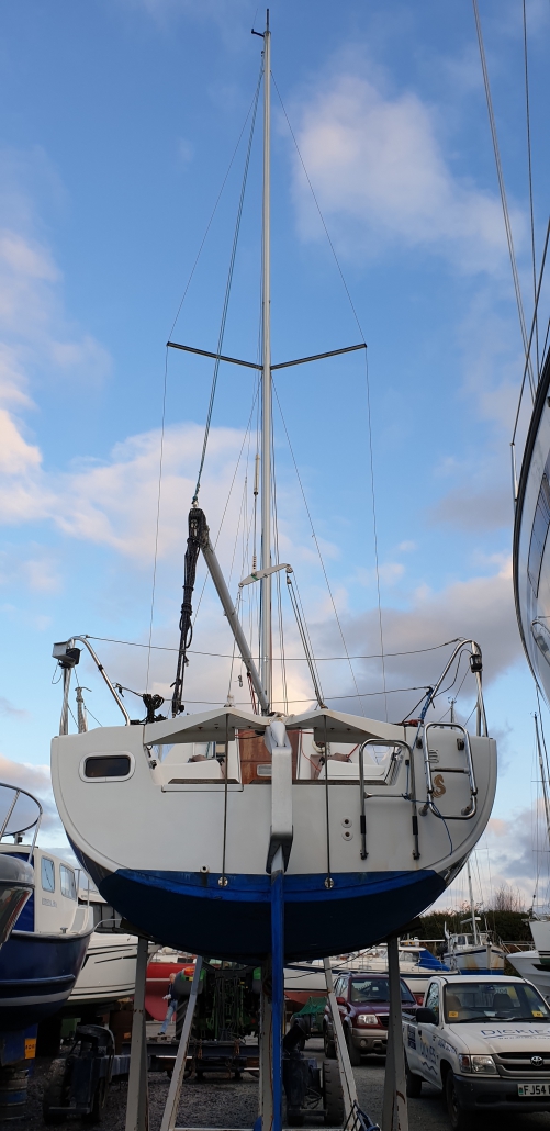 Basically I flew in to Manchester Thursday evening picked up a car from the airport and headed out for North Wales but around 1pm I stopped in a layby and slept for a couple of hours before starting again arriving too early to get into the boat yard but after finding some breakfast things began to open so I was able to find the boat. I had about an hour before the owner arrived but that was the plan as it gave me enough time to have a good look round at her and I have to say from the outside she looked good! She was quite tucked into the boat park so pictures were not easy.